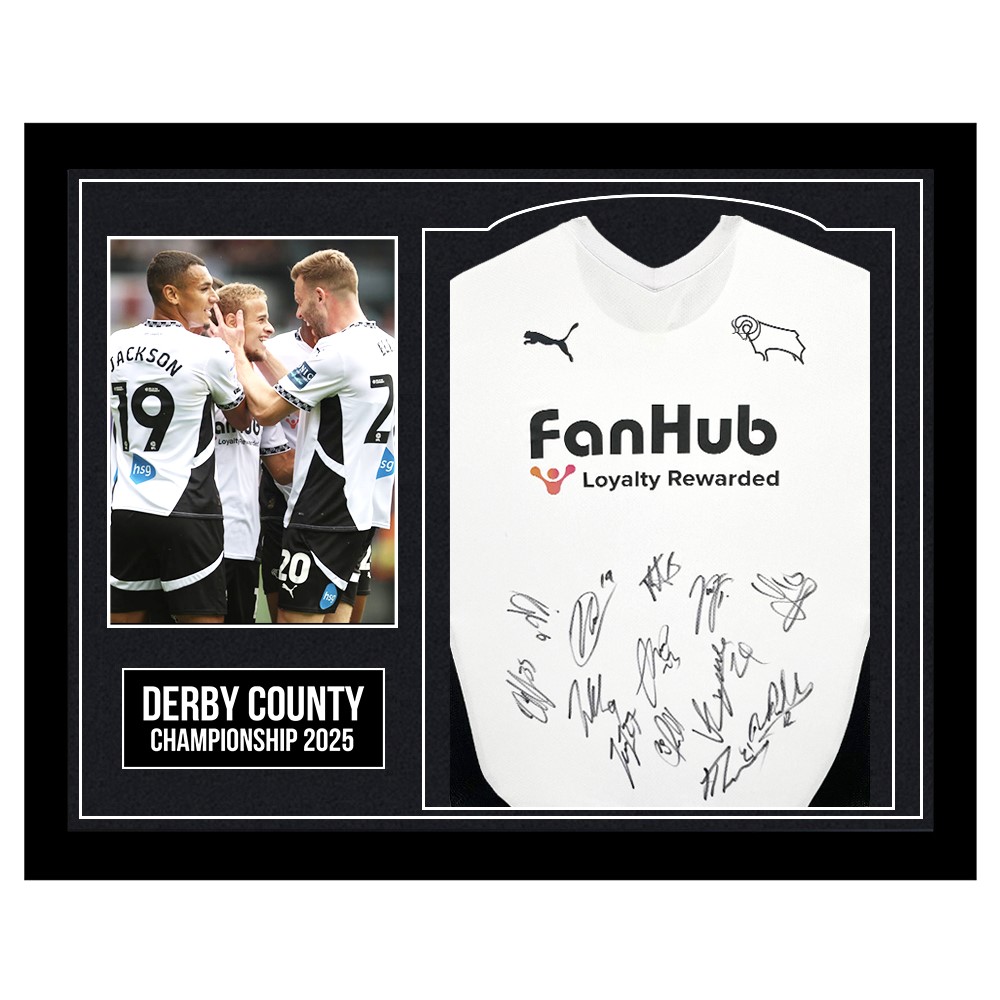 This is a black wooden frame with an inset to really show off your autographed item. Following our Classic look, the item is designed with the white border and comes ready to hang. We include a plaque describing the team, player or sports star. The size is 95 x 70CM.