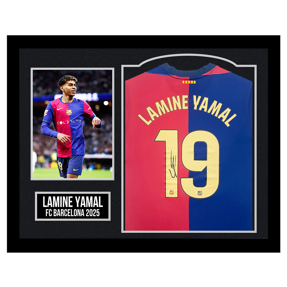 Framed Lamine Yamal Signed Shirt – FC Barcelona 2025 – Silver Design