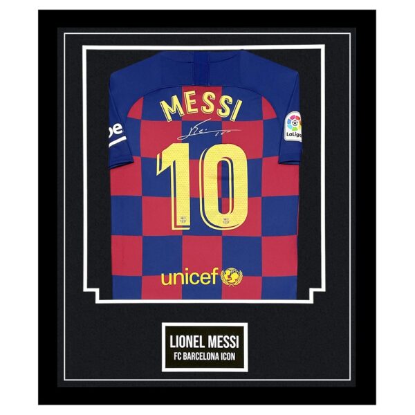 Signed Lionel Messi framed shirt, autographed by the FC Barcelona icon. The high-quality framing features the iconic jersey hand-signed by the greatest footballer. Messi is the most decorated player in the history of professional football. Showcase your love for the world’s best football player by adding this to your sports collection. Whether displayed in your home, office,