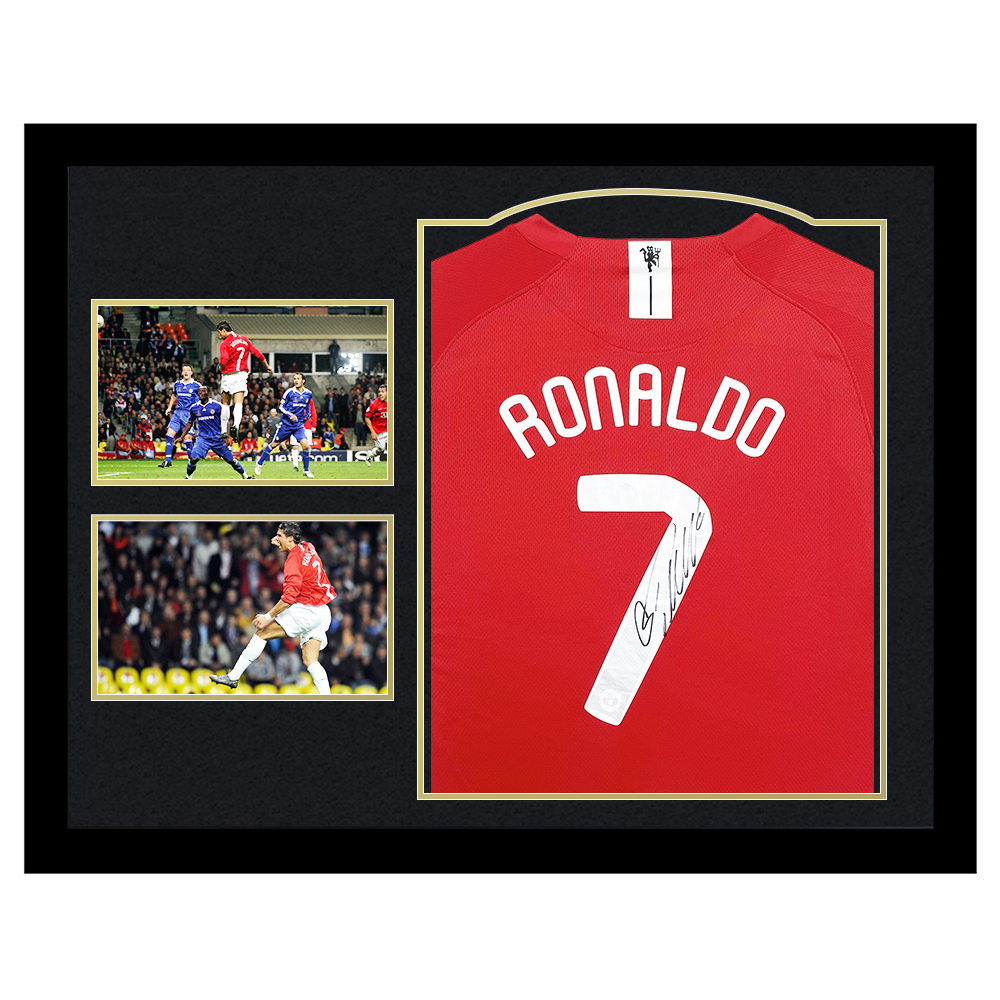 Signed Cristiano Ronaldo Framed Manchester United Shirt – UCL Final 2008 Goal – Gold Design