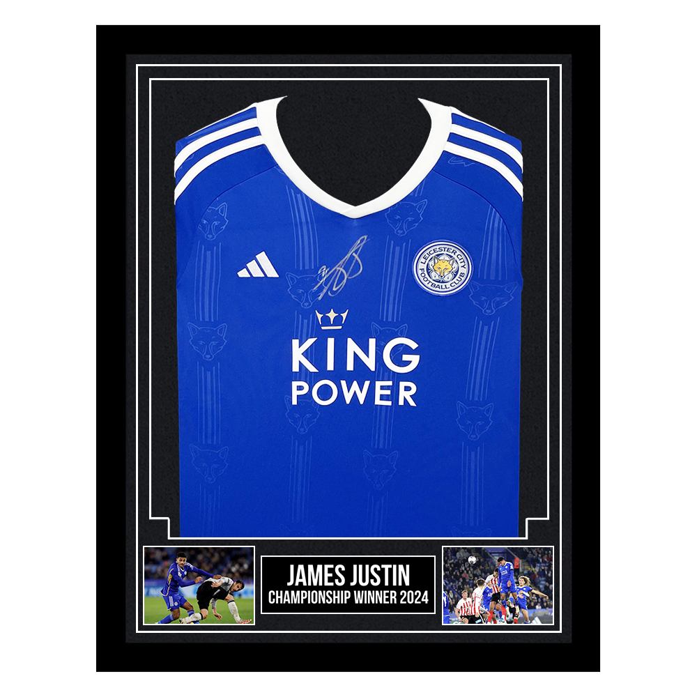 Signed James Justin Framed Leicester City Shirt – Championship Winner 2024