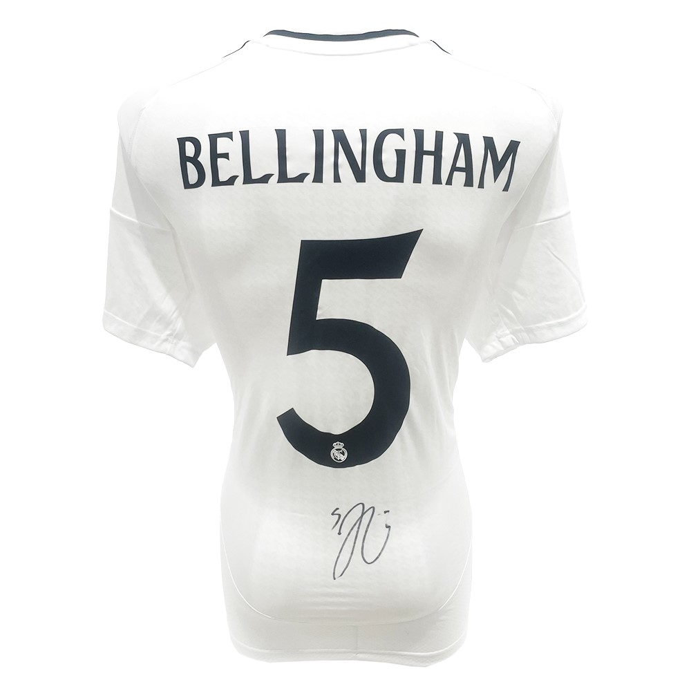 Get your hands on this exclusive signed and framed Jude Bellingham Real Madrid jersey!