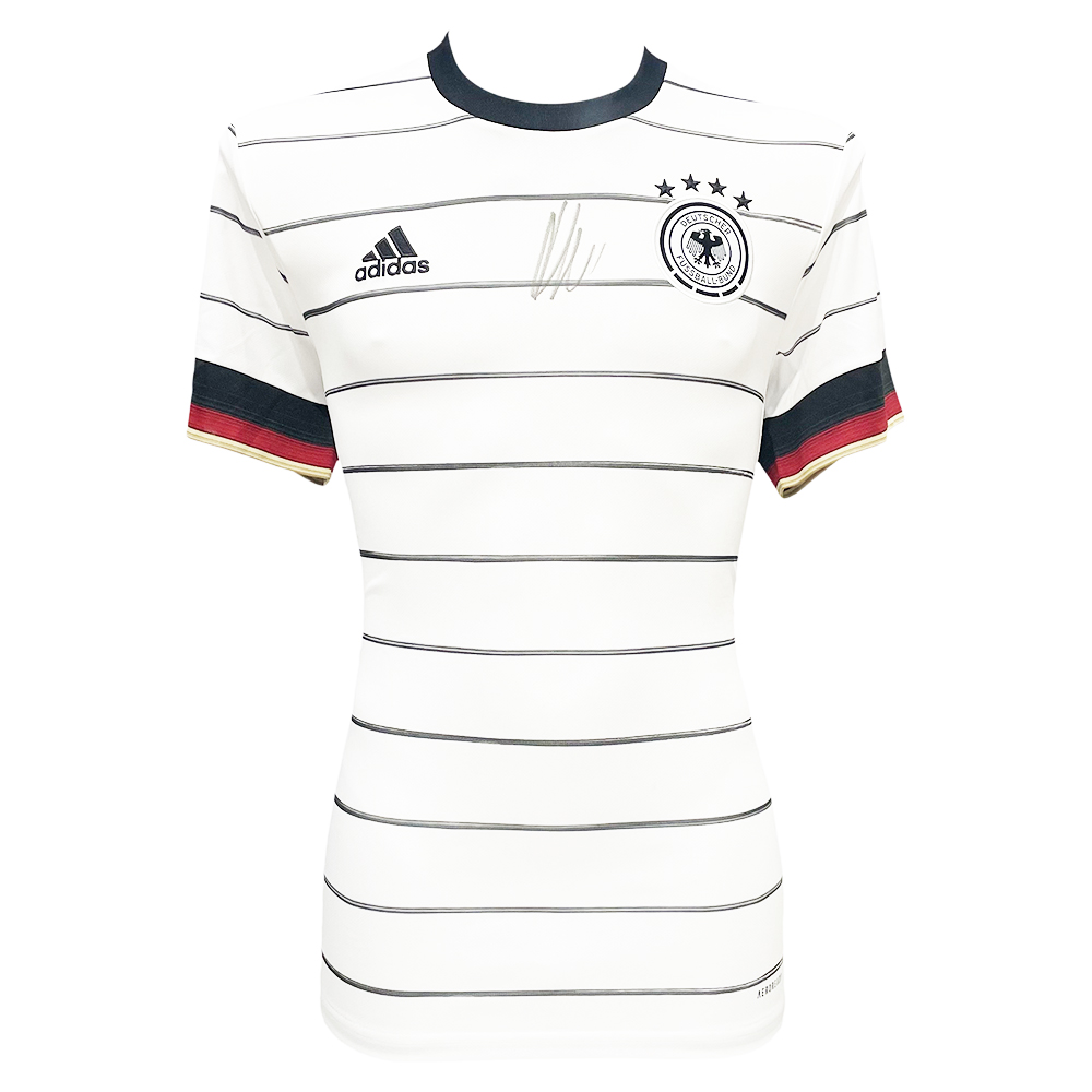 Iconic personally Signed Marco Reus Shirt – World Cup 2022 Autograph. This impressive white jersey with black trim comes with a club badge and Adidas sponsor name. Signed by Reus on the front, it is a true collector’s item. If you would like it framed by us, choose from the classic or premium options in the drop-down menu.