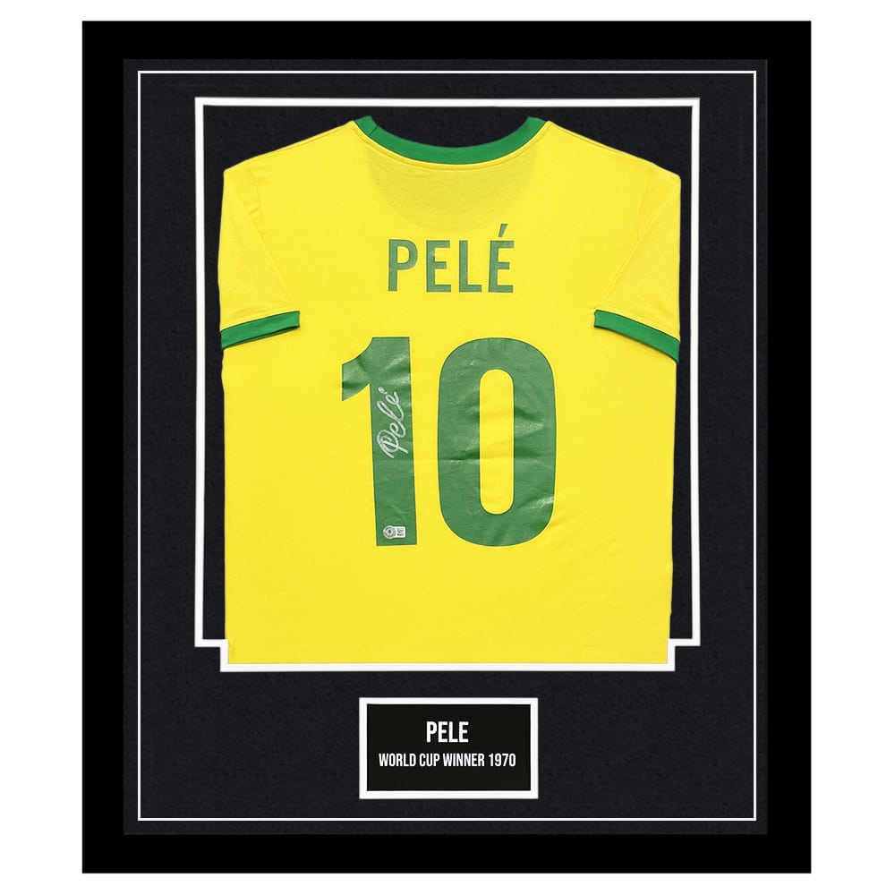 During his career, Pele played as a forward for Brazil and was regarded as one of the greatest players of all time by FIFA. In the 20th century, he ranked as one of the most popular footballing icons. For lovers of the game and Pele as a world-class player, this Brazil icon shirt is a must-have to add to your collection. Make this signed Pele jersey framed – Brazil icon autograph yours today and add Pele to your footballing wall of fame.