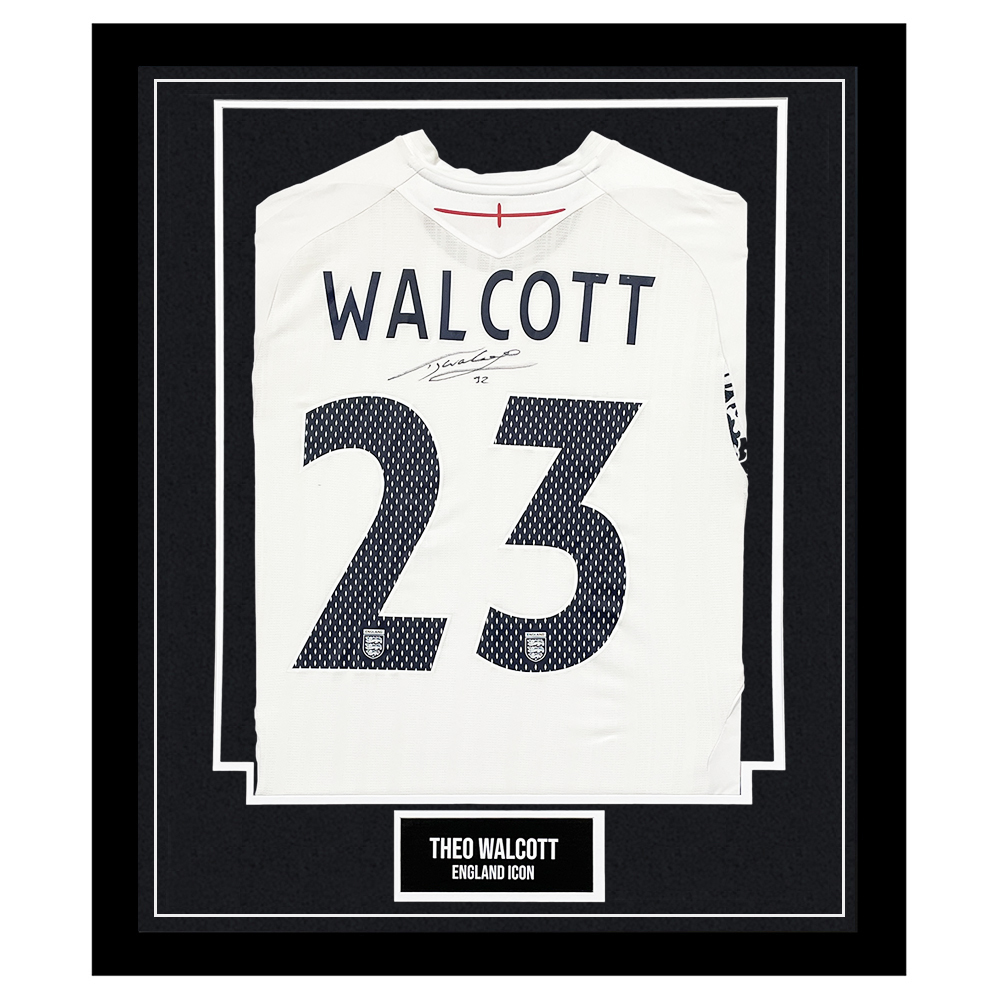 Signed Theo Walcott Framed Shirt – England Icon Autograph